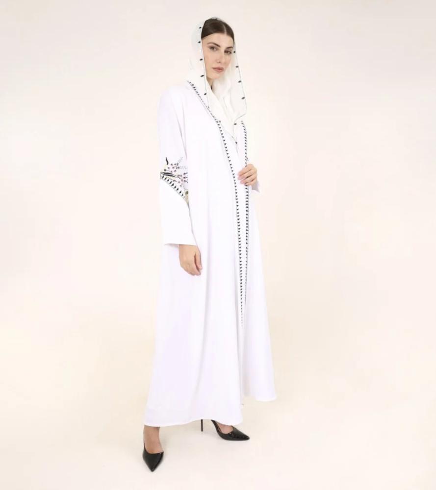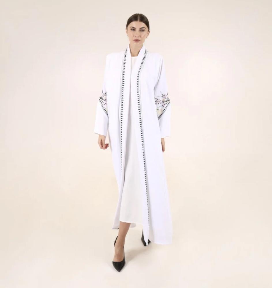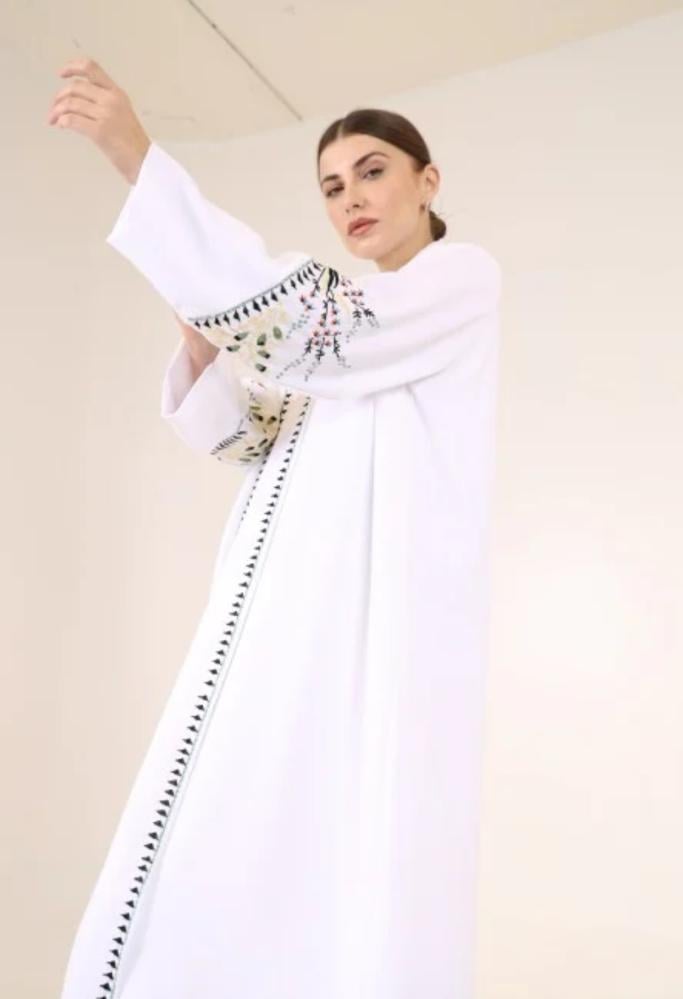 عباية صيفية ربيعية مفعمة بالحياة بترطيز ملون ومشرق وبأعلى درجات اللون الأبيض الجميل، وباكمام واسعة ومريحة ، خُيطت بأجود أنواع الكريب الاندونسي، لتعطيك طلة مُشرقة ومبهجة ومختلفة جداً.